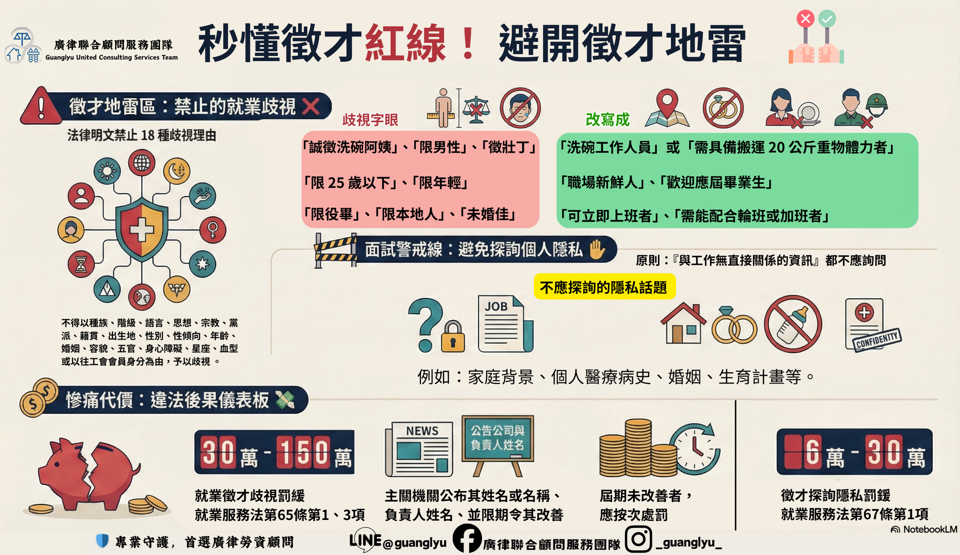 #廣律聯合顧問服務團 #就業服務法 #勞資顧問 #面試禁忌 #企業避險 #懶人包